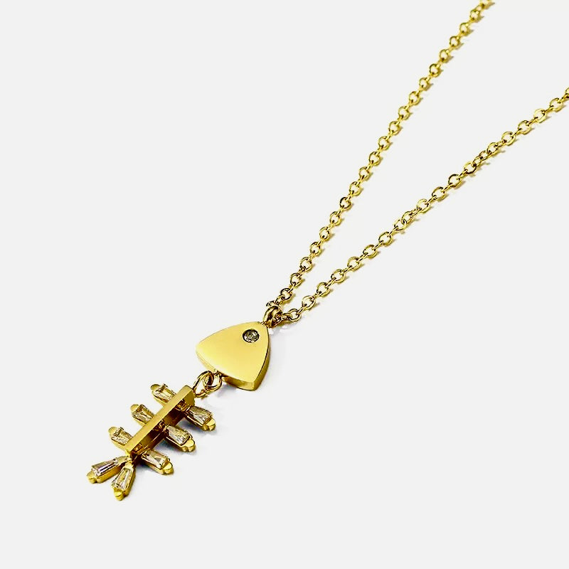 A relic of the deep, reimagined for the bold. The Siren Pendant transforms the fishbone into wearable myth—sleek, subversive, and laced with unexpected elegance. Its articulated vertebrae shimmer with tapered crystal baguettes, anchored by a gleaming head charm set with a singular stone eye.