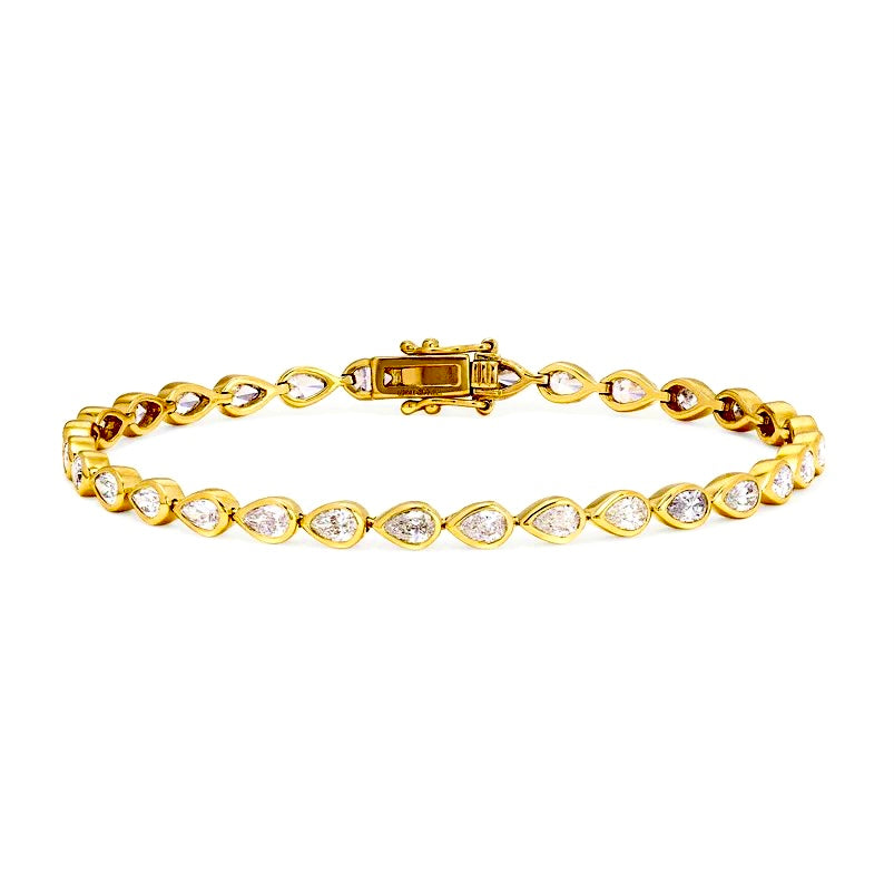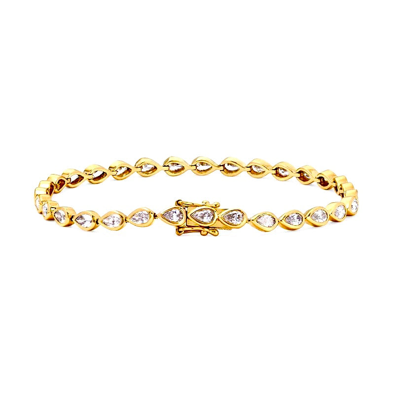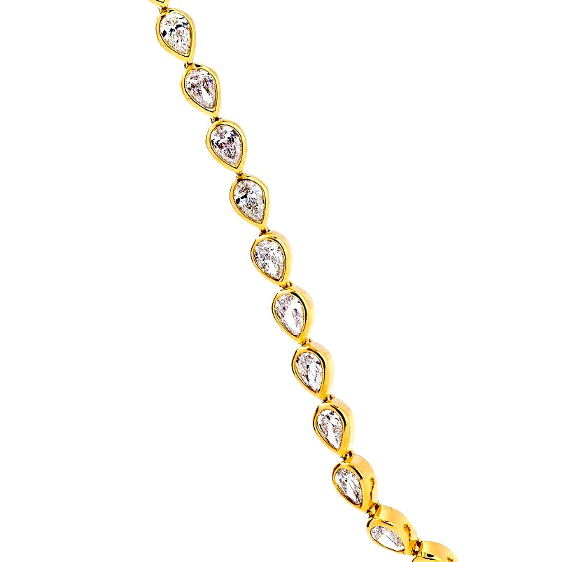 - Teardrop-cut white CZ tennis bracelet with full bezel settings