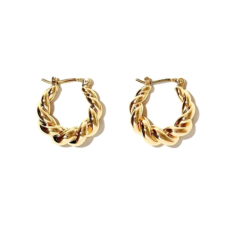 - High-polish, rope-inspired hoop earrings with a sculptural twist silhouette