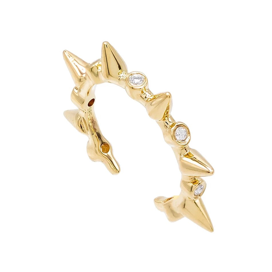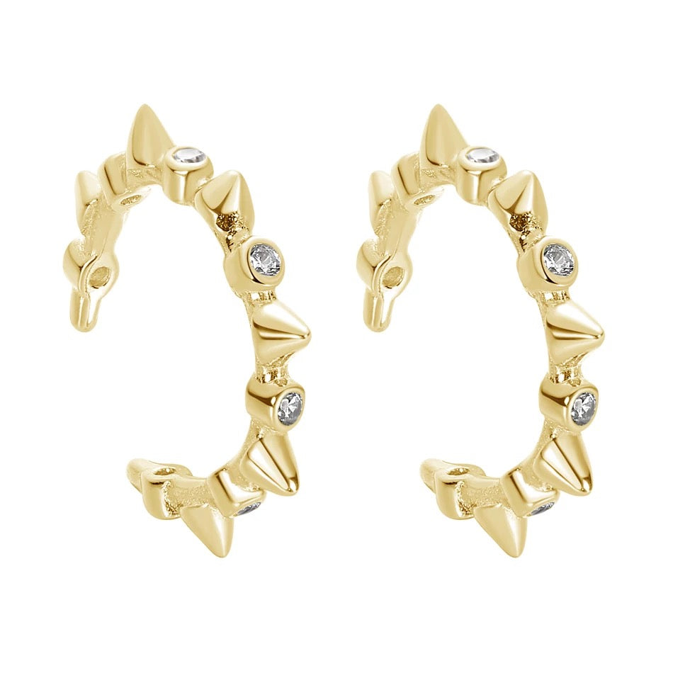 - A single 925 sterling silver 18K gold plated ear cuff complimented with Opal gemstones and spike detailing. The iconic ear cuff is perfect for adding a daring detail and edgy flare to your ear stack or all on its own.
