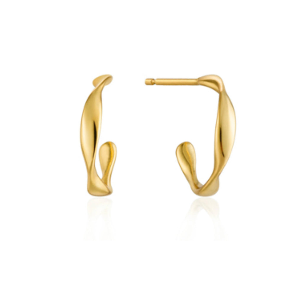 - Sculptural 18k gold vermeil hoop earrings with a fluid, twisted silhouette